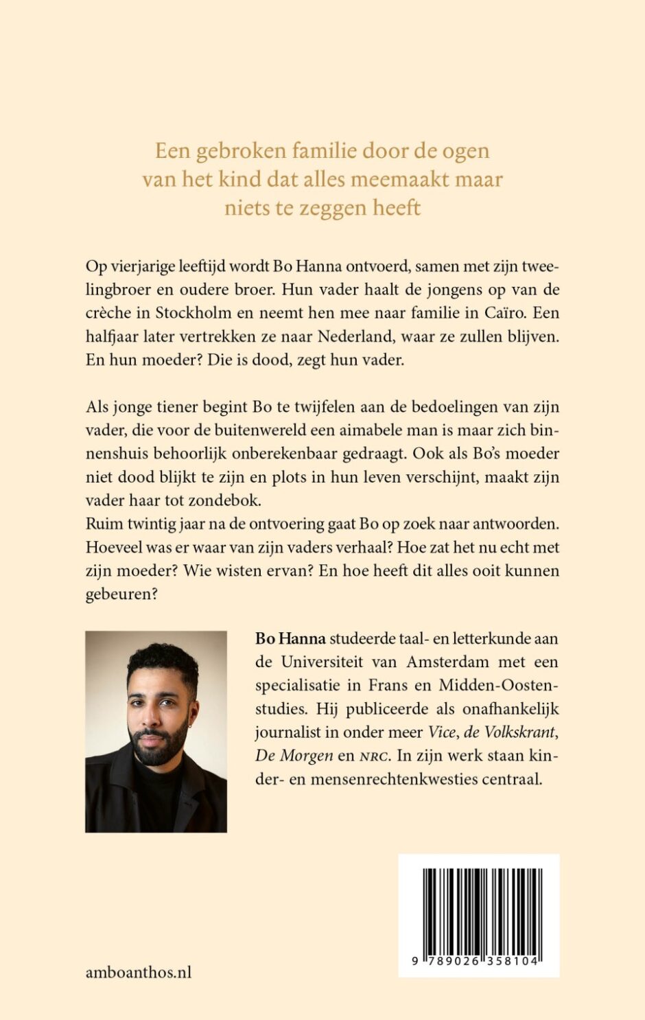 Op vierjarige leeftijd wordt Bo Hanna ontvoerd, samen met zijn tweelingbroer en oudere broer. Hun vader haalt de jongens op van de crèche in Stockholm en neemt hen mee naar familie in Caïro. Een half jaar later vertrekken ze naar Nederland, waar ze zullen blijven. En hun moeder? Die is dood, zegt hun vader.
