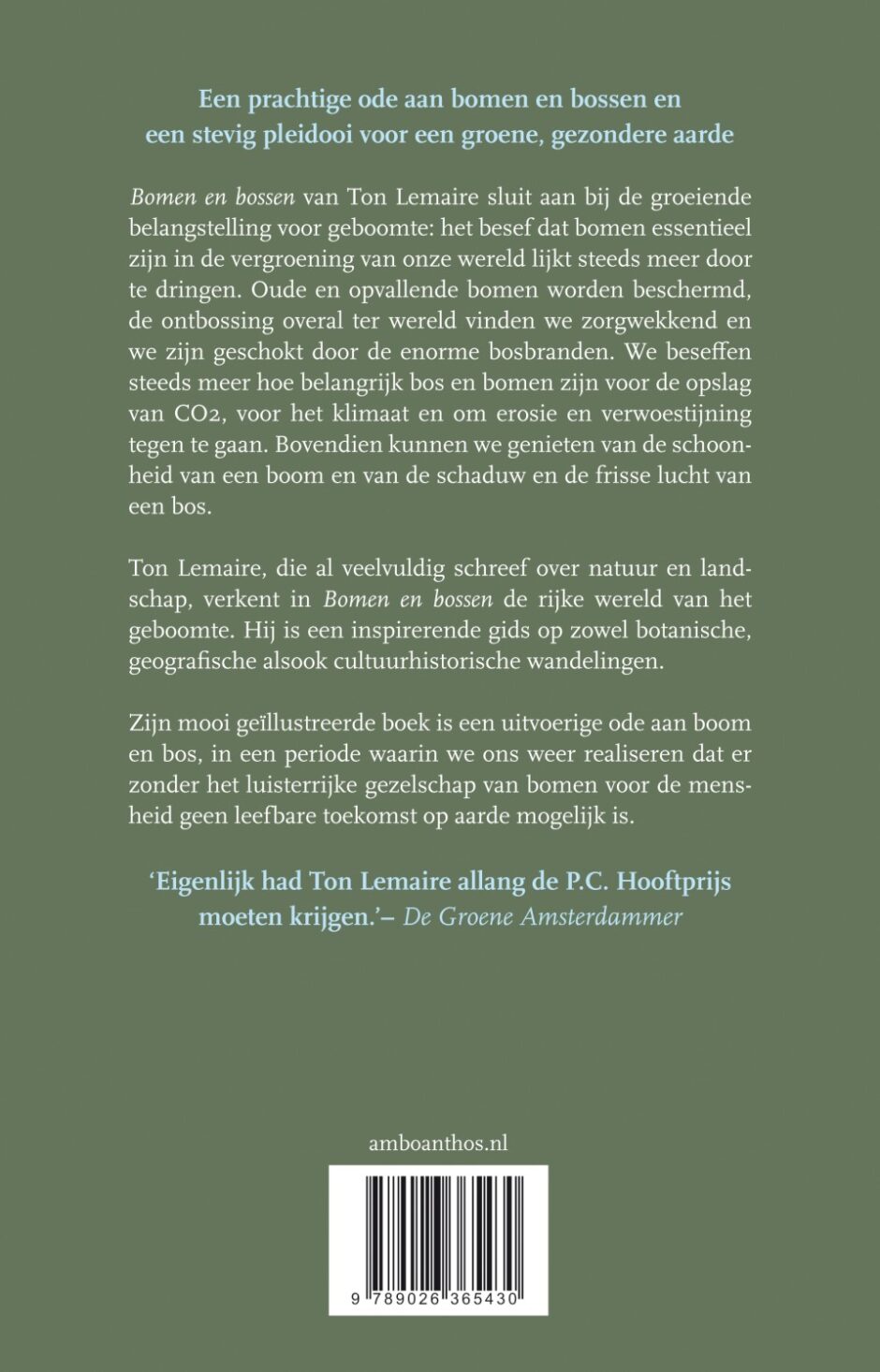 Ton Lemaire, die al veelvuldig schreef over natuur en landschap, verkent in Bomen en bossen de rijke wereld van het geboomte. Hij is een inspirerende gids op zowel botanische, geografische alsook cultuurhistorische wandelingen. Zijn mooi geïllustreerde boek is een uitvoerige ode aan boom en bos, in een periode waarin we ons weer realiseren dat er zonder het luisterrijke gezelschap van bomen voor de mensheid geen leefbare toekomst op aarde mogelijk is.