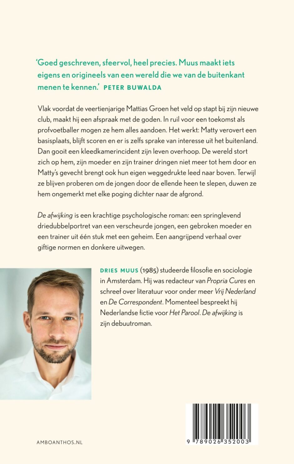 De afwijking is een krachtige psychologische roman: een springlevend driedubbelportret van een verscheurde jongen, een gebroken moeder en een trainer met een geheim. Een meeslepend verhaal over publieke vernedering en persoonlijke taboes, over donkere uitwegen uit neerwaartse spiralen.