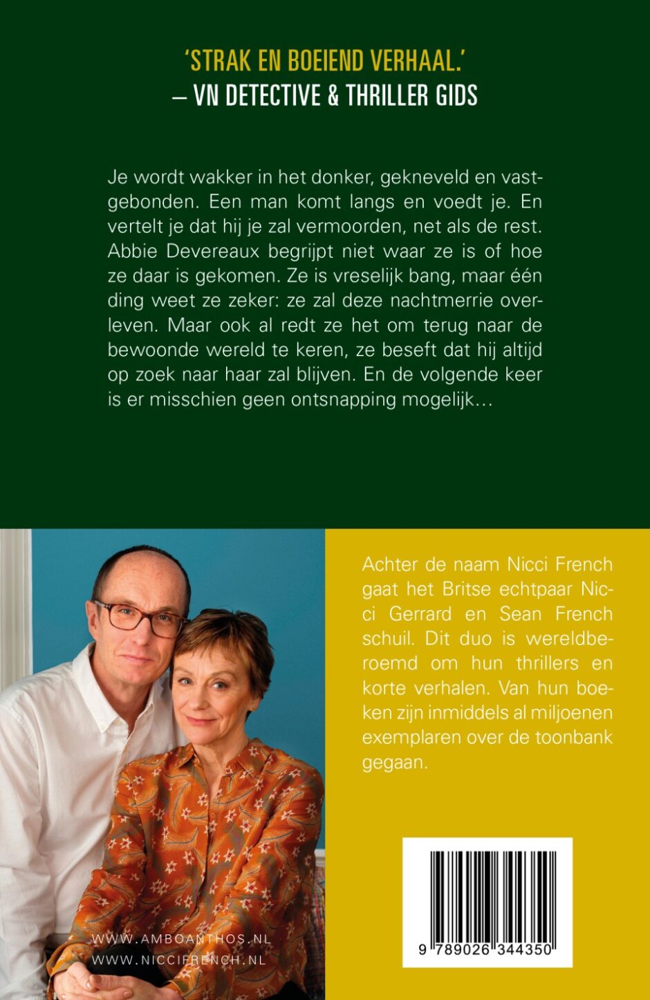 Achter de naam Nicci French gaat het Britse echtpaar Nicci Gerrard en Sean French schuil. Dit duo is wereldberoemd om hun thrillers en korte verhalen. In 1997 debuteerden ze met Het geheugenspel. Al vijfentwintig jaar zijn ze niet weg te denken uit de thrillerwereld.