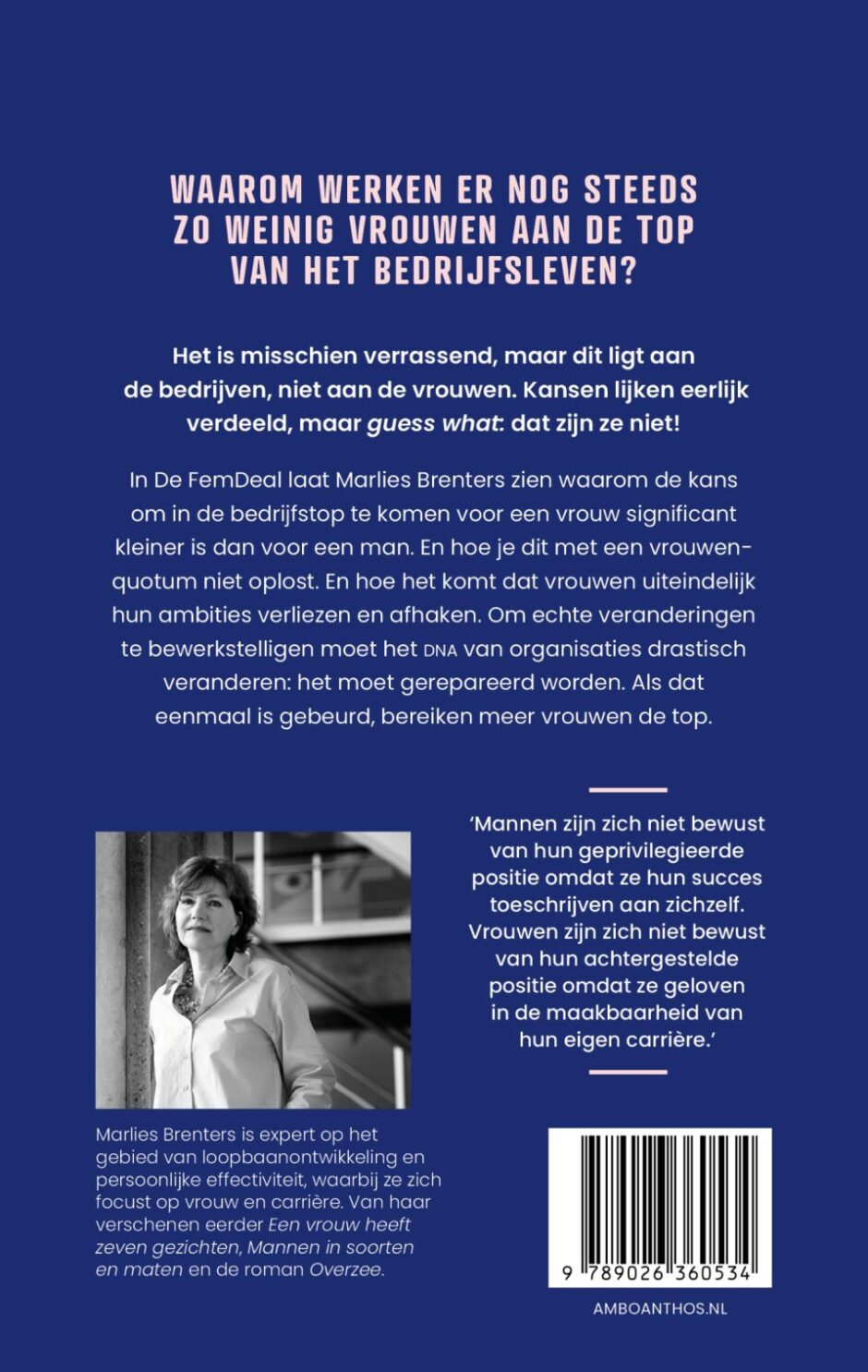 De FemDeal van Marlies Brenters laat de psychologie achter de ongelijke kansen voor mannen en vrouwen in het bedrijfsleven zien, én de oplossingen voor eerlijke kansen.