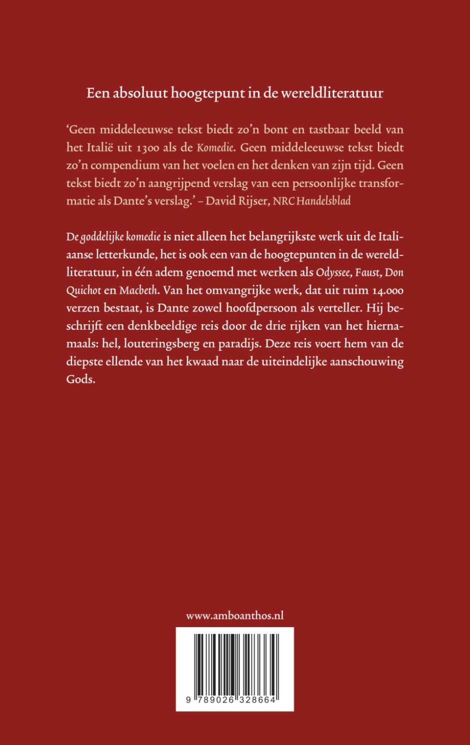 De goddelijke komedie is vele malen volledig in het Nederlands vertaald. Frans van Doorens alom geprezen prozavertaling maakt Dante toegankelijk voor de moderne lezer, met behoud van de grote zeggingskracht van het origineel.