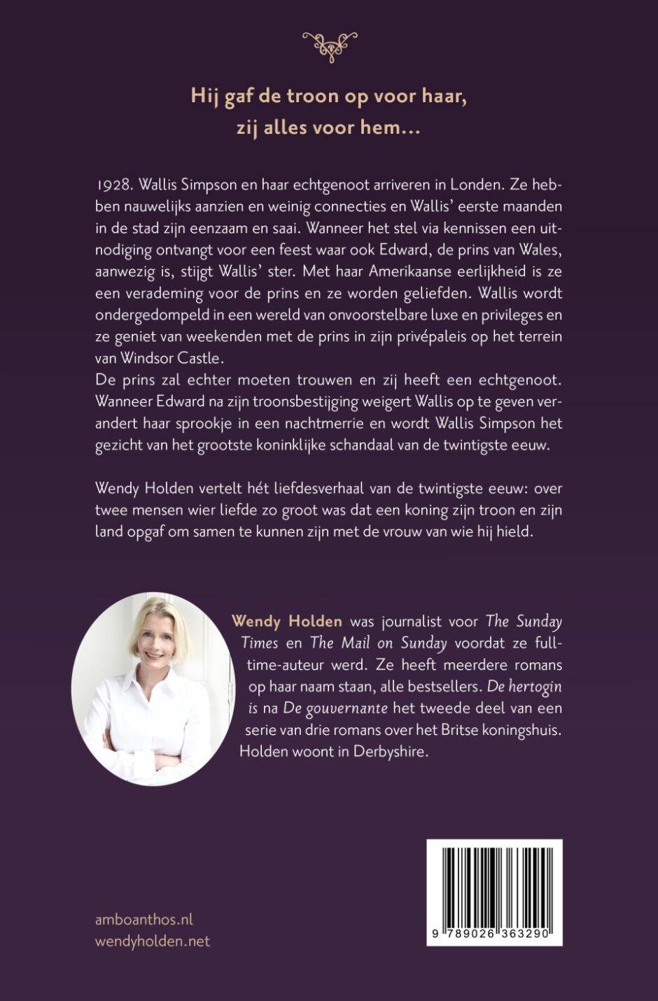 In de roman De hertogin vertelt Wendy Holden vertelt hét liefdesverhaal van de twintigste eeuw: over twee mensen wier liefde zo groot was dat een koning zijn troon en zijn land opgaf om samen te kunnen zijn met de vrouw van wie hij hield.