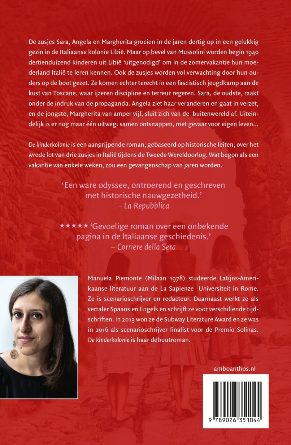 De kinderkolonie is een aangrijpende roman, gebaseerd op historische feiten, over het wrede lot van drie zusjes in Italië tijdens de Tweede Wereldoorlog. Wat begon als een vakantie van enkele weken, zou een gevangenschap van jaren worden. Voor de lezers van Jenna Blum, Heather Morris, Tatiana de Rosnay en Martha Hall Kelly.