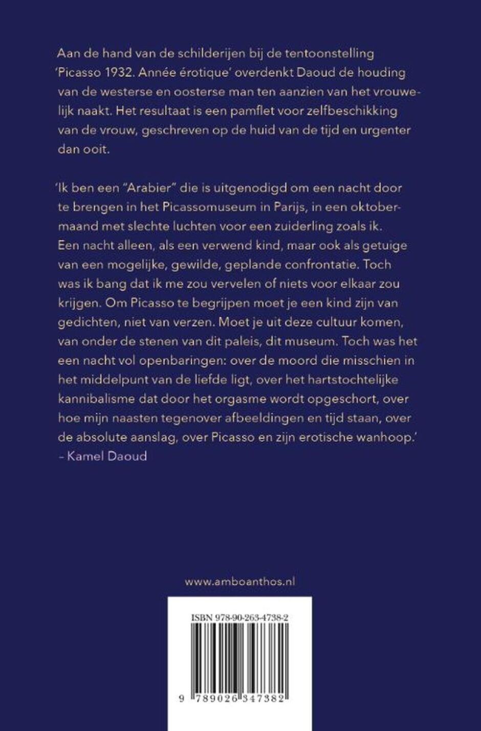 Aan de hand van de schilderijen op de tentoonstelling ‘Picasso 1932. Année érotique’ overdenkt Daoud de houding van de westerse en oriëntaalse man ten aanzien van het vrouwelijk naakt. Het resultaat is een pamflet voor het zelfbeschikkingsrecht van de vrouw, op de huid van de tijdgeest en meer dan urgent.