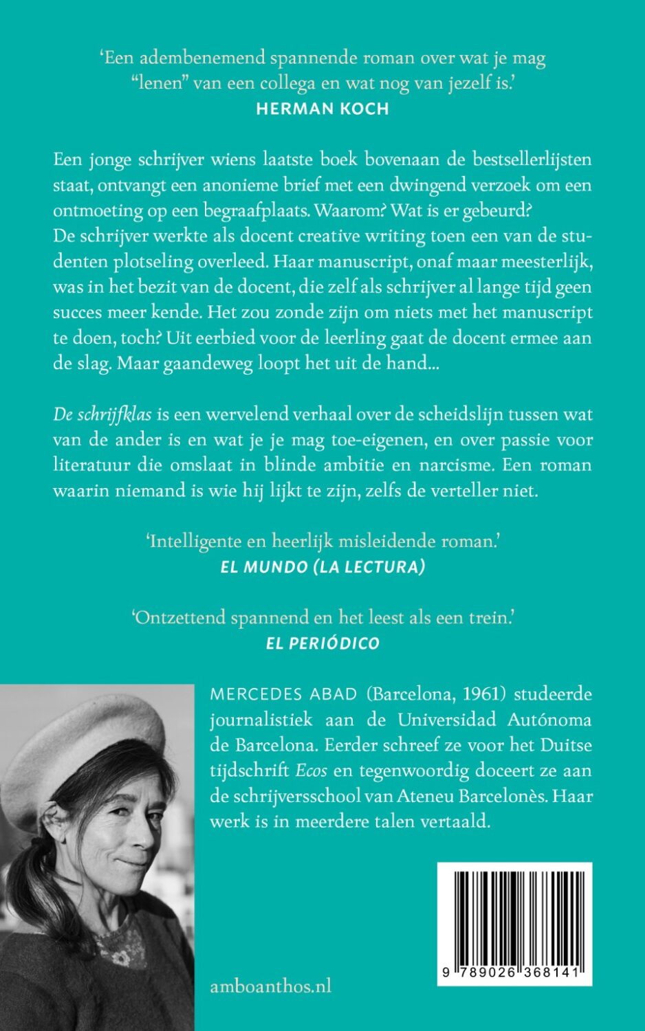 De schrijfklas is een wervelend verhaal over de scheidslijn tussen wat van de ander is en wat je je mag toe-eigenen, en over passie voor literatuur die omslaat in blinde ambitie en narcisme. Een roman waarin niemand is wie hij lijkt te zijn, zelfs de verteller niet.
