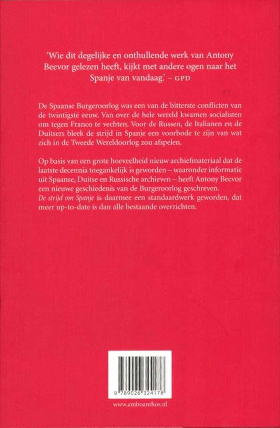 De Spaanse Burgeroorlog was een van de bitterste conflicten van de twintigste eeuw. Van over de hele wereld kwamen socialisten om tegen Franco te vechten. Voor de Russen, de Italianen en de Duitsers bleek de strijd in Spanje een voorbode te zijn van wat zich in de Tweede Wereldoorlog zou afspelen. Op basis van een grote hoeveelheid nieuw archiefmateriaal dat de laatste decennia toegankelijk is geworden - waaronder informatie uit Spaanse, Duitse en Russische archieven - heeft Anthony Beevor een nieuwe geschiedenis van de Burgeroorlog geschreven. De strijd om Spanje is daarmee een standaardwerk geworden, dat meer up-to-date is dan alle bestaande overzichten.