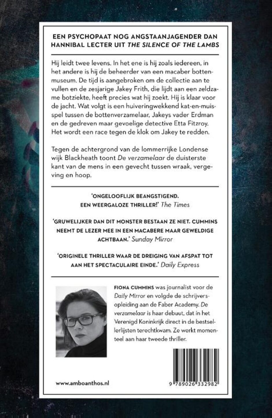 Fiona Cummins creëerde voor De verzamelaar een psychopaat die nog angstaanjagender is dan Hannibal Lecter. De verzamelaar toont de donkerste kant van de mens en een gevecht tussen wraak, vergeving en hoop.