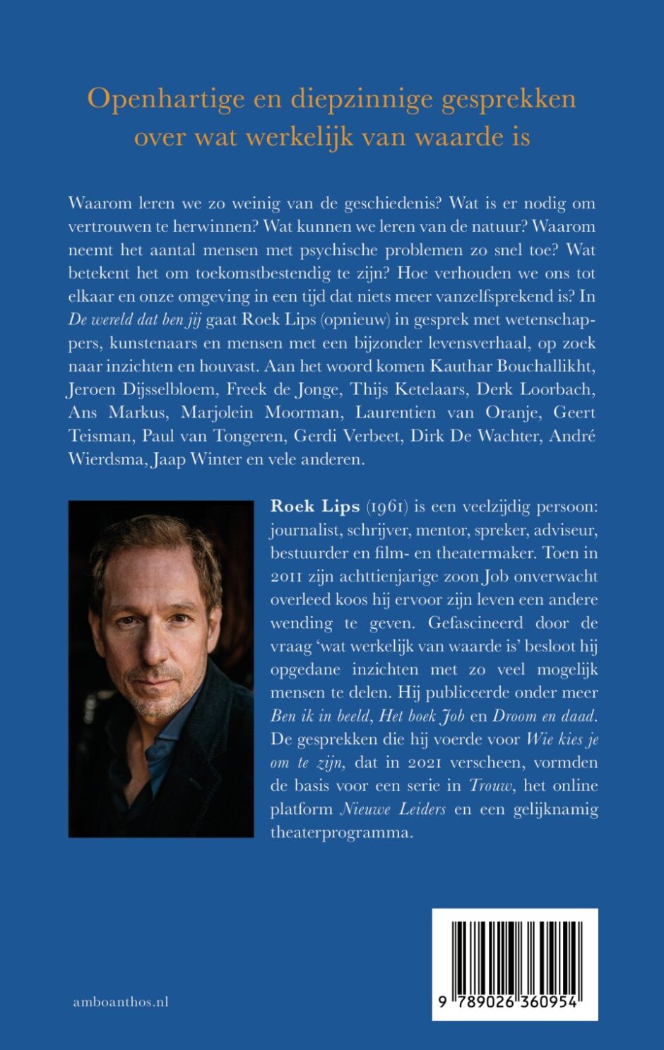 Waarom leren we zo weinig van de geschiedenis? Wat is er nodig om vertrouwen te herwinnen? Wat kunnen we leren van de natuur? Waarom neemt het aantal mensen met psychische problemen zo snel toe? Wat betekent het om toekomstbestendig te zijn? Hoe verhouden we ons tot elkaar en onze omgeving in een tijd dat niets meer vanzelfsprekend is? In De wereld dat ben jij gaat Roek Lips (opnieuw) in gesprek met wetenschappers, kunstenaars en mensen met een bijzonder levensverhaal, op zoek naar inzichten en houvast.
