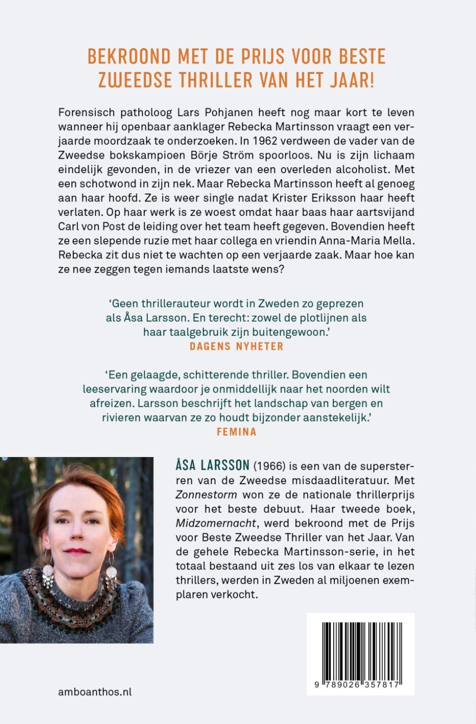 Geen thrillerauteur wordt in Zweden zo geprezen als Åsa Larsson. En terecht: zowel de plotlijnen als haar taalgebruik zijn buitengewoon. Dagens Nyheter