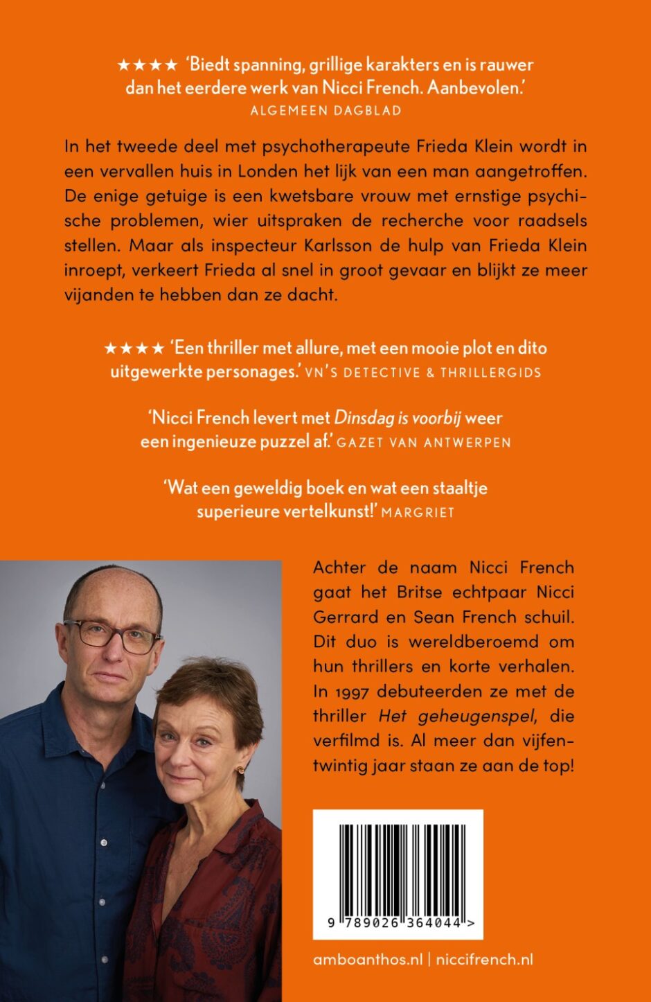 ‘Het schrijversduo Nicci French heeft met psychoanalytica Frieda Klein een goudmijntje aangeboord. In de tweede thriller betoont ze zich bij een complexe moordzaak wederom doortastend.’ - Nu.nl