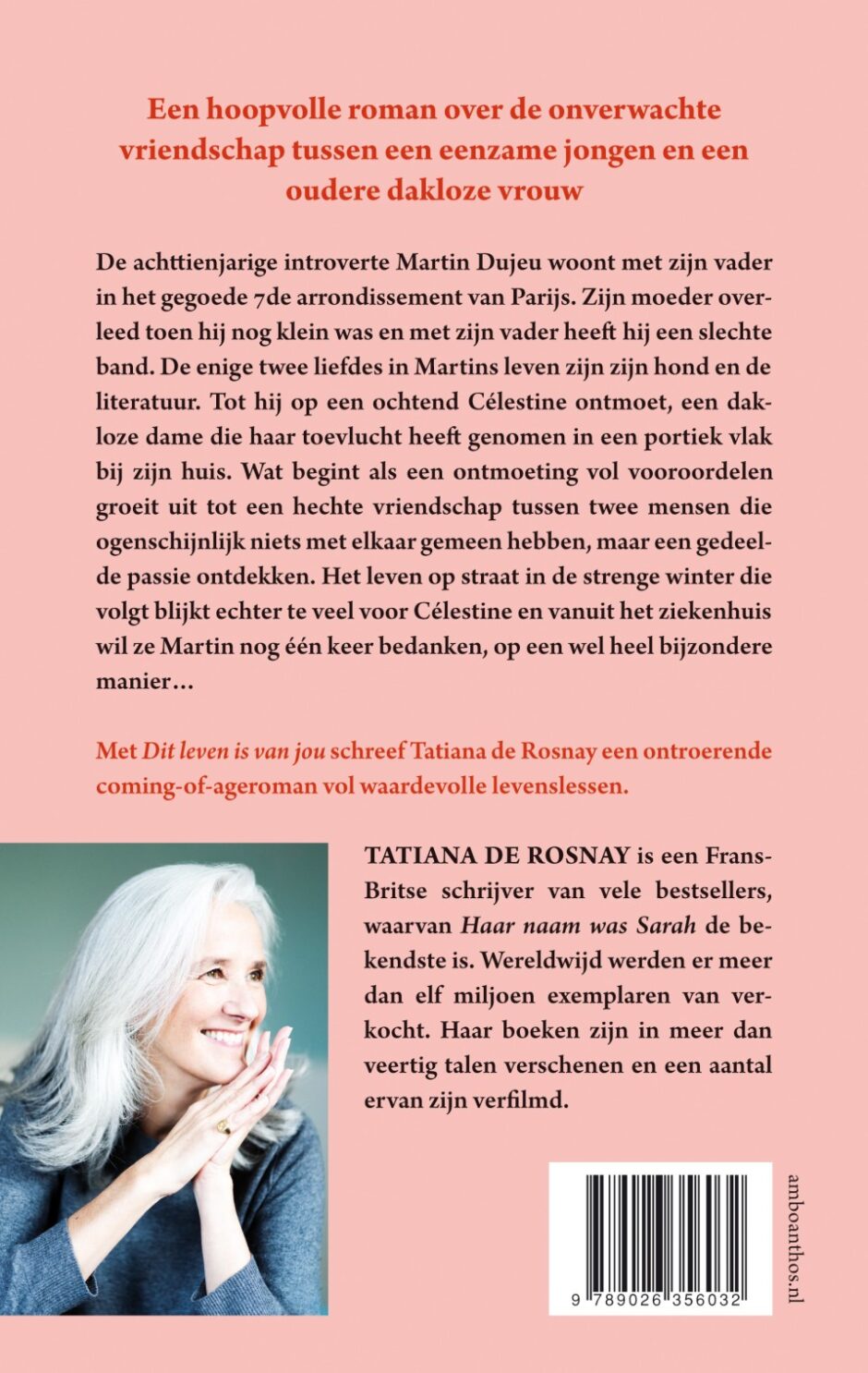 Dit leven is van jou van Tatiana de Rosnay is een ontroerende roman over de onverwachte vriendschap tussen een eenzame jongen en een oude, dakloze dame. Van de auteur van Haar naam was Sarah.