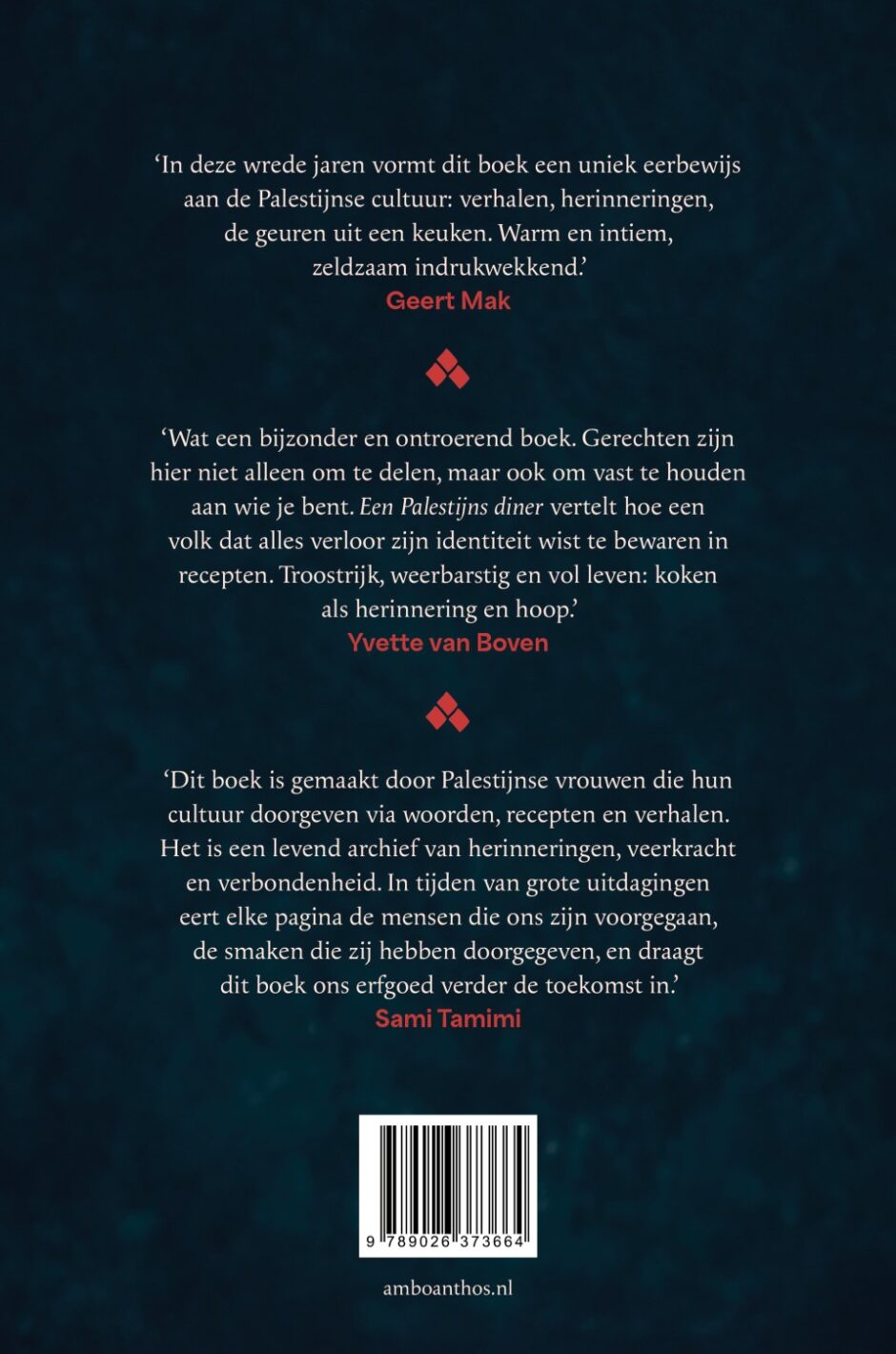 ‘Dit boek is gemaakt door Palestijnse vrouwen die hun erfgoed doorgeven via woorden, recepten en verhalen. Het is een levend archief van herinneringen, veerkracht en verbondenheid.’– Sami Tamimi