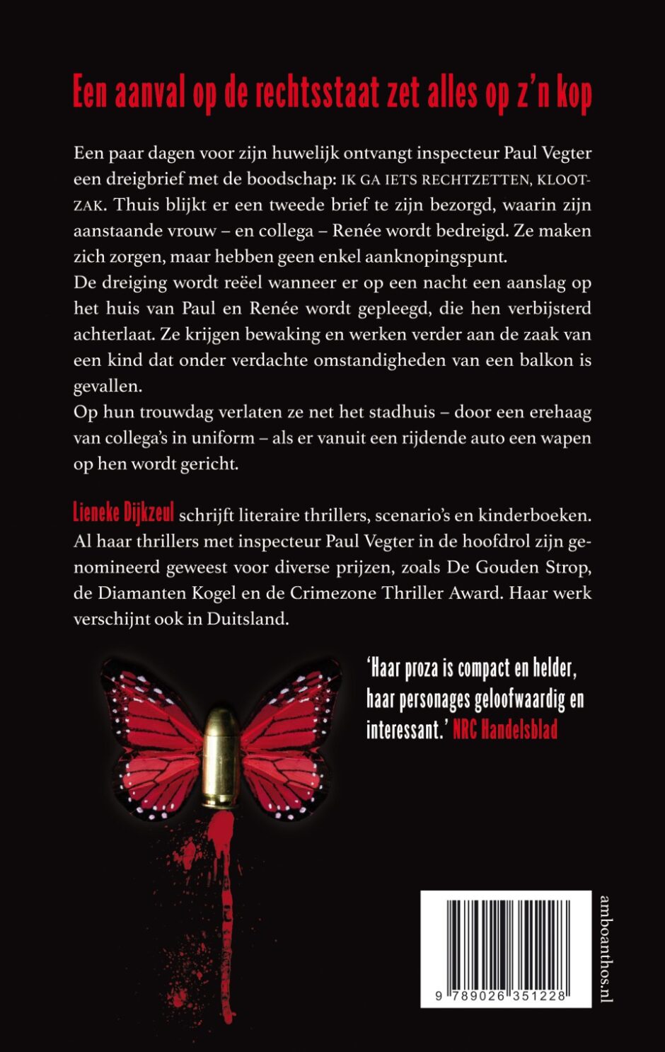 Een paar dagen voor zijn huwelijk ontvangt inspecteur Paul Vegter een dreigbrief met de boodschap: ik ga iets rechtzetten, klootzak. Thuis blijkt er een tweede brief te zijn bezorgd, waarin zijn aanstaande vrouw - en collega - Renée wordt bedreigd. Ze maken zich zorgen, maar hebben geen enkel aanknopingspunt.