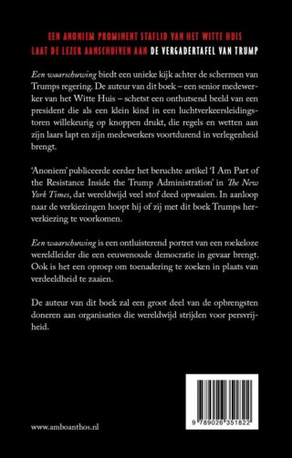 Een waarschuwing (de Nederlandse vertaling van A Warning) laat de lezer aanschuiven aan de vergadertafel van Trump. Geschreven door een anoniem en prominent staflid van het Witte Huis. Een waarschuwing biedt een kijkje achter de schermen van Trumps regering en zorgde al voor verschijning voor veel opschudding in de Verenigde Staten. De anonieme klokkenluider publiceerde eerder in The New York Times het beruchte artikel ‘I Am Part of the Resistance Inside the Trump Administration’ dat de VS op hun grondvesten deed schudden.