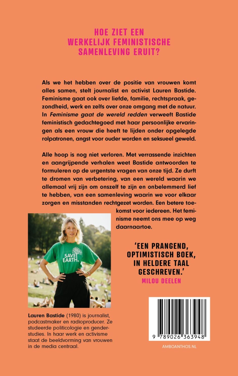 Alle hoop is nog niet verloren. Met verrassende inzichten en aangrijpende verhalen weet Bastide antwoorden te formuleren op de urgentste vragen van onze tijd. Ze durft te dromen van verbetering, van een wereld waarin we allemaal vrij zijn om onszelf te zijn en onbelemmerd lief te hebben, van een samenleving waarin we voor elkaar zorgen en misstanden rechtgezet worden. Een betere toekomst voor iedereen. Het feminisme neemt ons mee op de weg daarnaartoe.