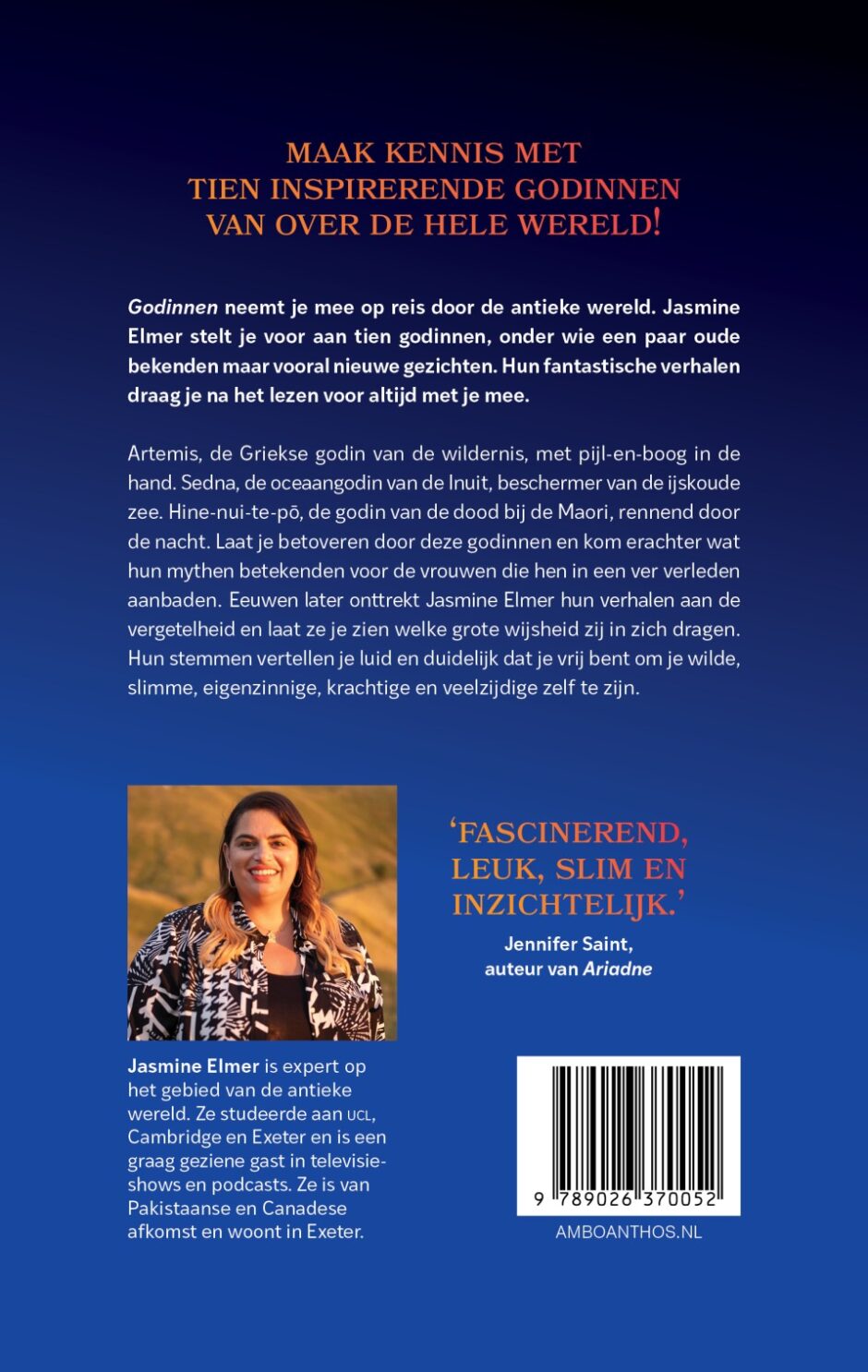 Godinnen neemt je mee op reis door de antieke wereld. Jasmine Elmer stelt je voor aan tien godinnen, onder wie een paar oude bekenden maar vooral nieuwe gezichten. Hun fantastische verhalen draag je na het lezen voor altijd met je mee.