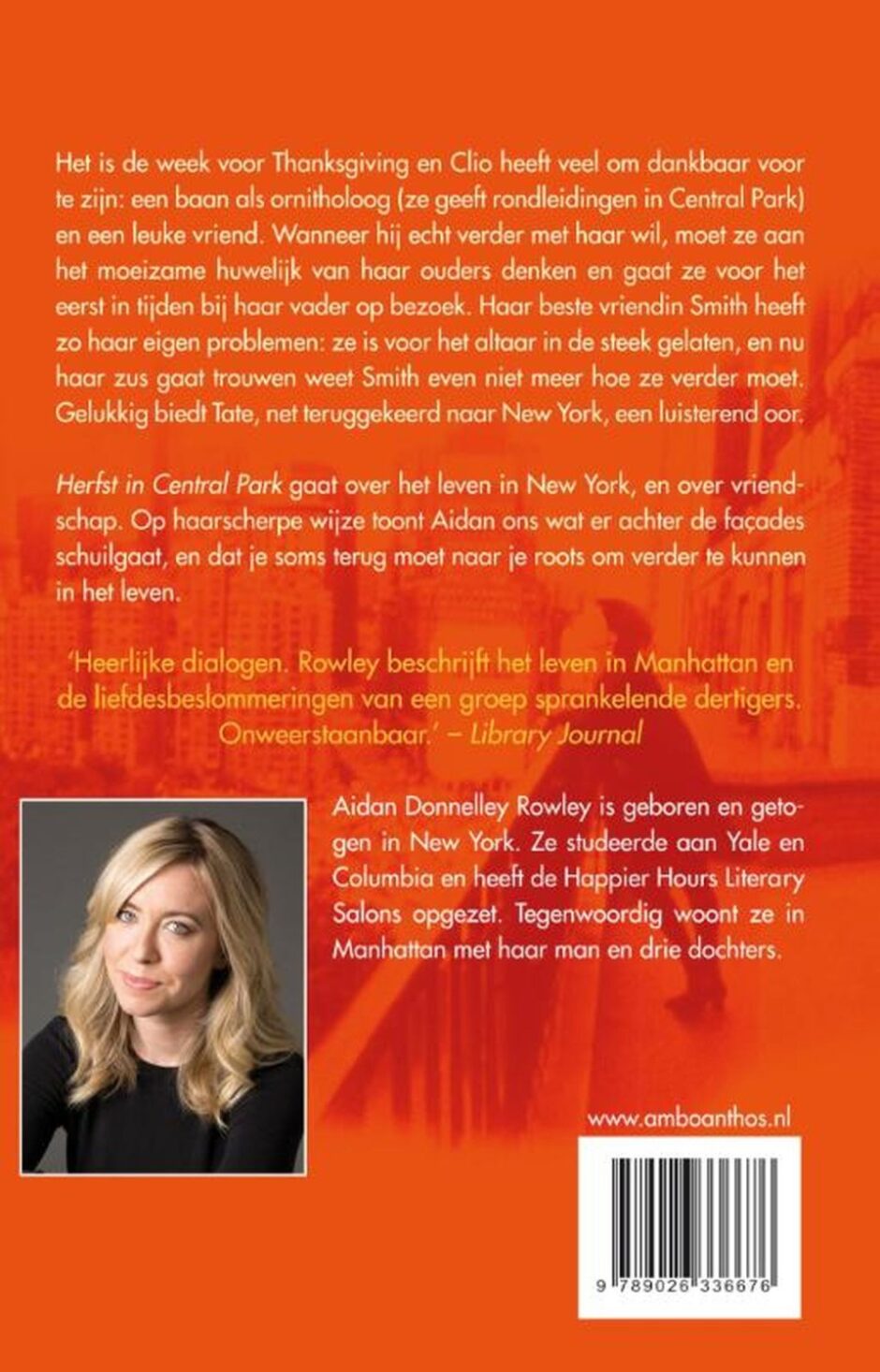 ‘Herfst in Central Park’ gaat over het leven in New York, en over vriendschap. In haarscherpe en humoristische scènes toont Aidan ons wat er achter de façades schuilgaat, en dat je soms moet terugkeren naar je roots om door te kunnen gaan. ‘Herfst in Central Park’ is sprankelend geschreven en een heerlijk boek om lekker mee op de bank te kruipen. Dompel je onder in New York!