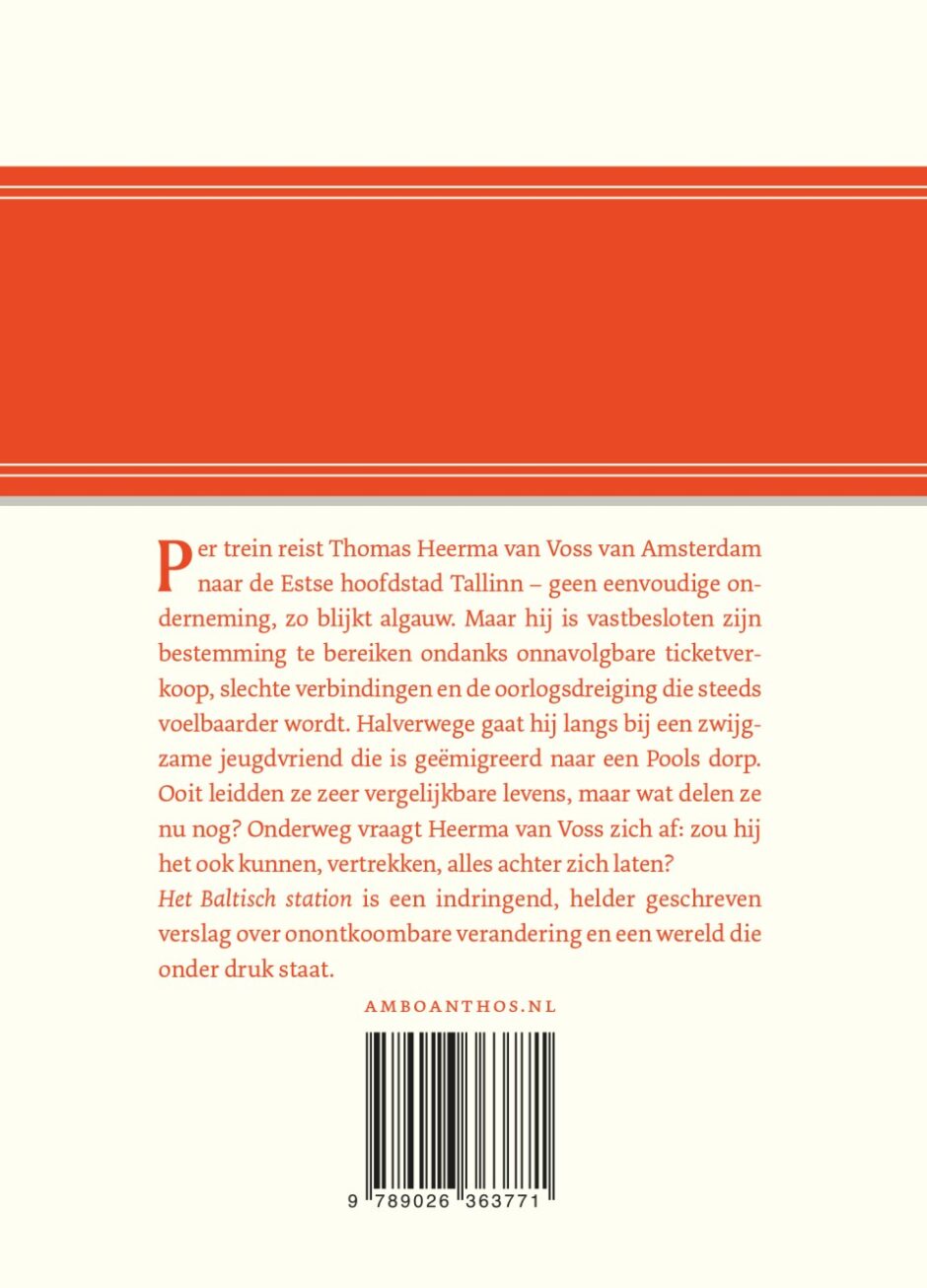 Per trein reist Thomas Heerma van Voss van Amsterdam naar de Estse hoofdstad Tallinn – geen eenvoudige onderneming, zo blijkt algauw. Maar hij is vastbesloten zijn bestemming te bereiken ondanks onnavolgbare ticketverkoop, slechte verbindingen en de oorlogsdreiging die steeds voelbaarder wordt. Halverwege gaat hij langs bij een zwijgzame jeugdvriend die is geëmigreerd naar een Pools dorp. Ooit leidden ze zeer vergelijkbare levens, maar wat delen ze nu nog? Onderweg vraagt Heerma van Voss zich af: zou hij het ook kunnen, vertrekken, alles achter zich laten?