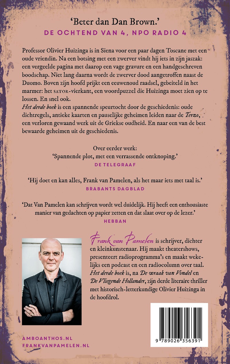 Het derde boek is een spannende speurtocht door de geschiedenis: oude dichtregels, antieke kaarten en pauselijke geheimen leiden naar de Terzo, een verloren gewaand werk uit de Griekse oudheid. En naar een van de best bewaarde geheimen uit de geschiedenis.