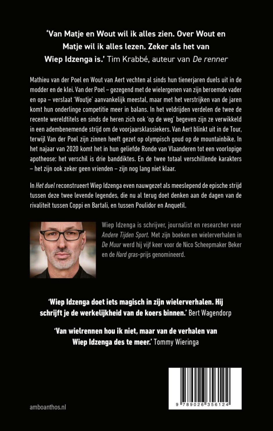 Het duel van Wiep Idzenga heeft de Nico Scheepmaker Beker, vakprijs voor het beste sportboek 2022 gewonnen. Het duel vertelt over Mathieu van der Poel en Wout van Aert die al sinds hun tienerjaren duels uitvechten in de modder en de klei. Van der Poel – gezegend met de wielergenen van zijn beroemde vader en opa – verslaat ‘Woutje’ aanvankelijk meestal, maar met het verstrijken van de jaren wordt Van Aert groter en sterker en verschuift de balans. In het veldrijden verdelen de recente wereldtitels en sinds zich ook 'op de weg' begeven zijn ze verwikkeld in een adembenemende strijd om de voorjaarsklassiekers.