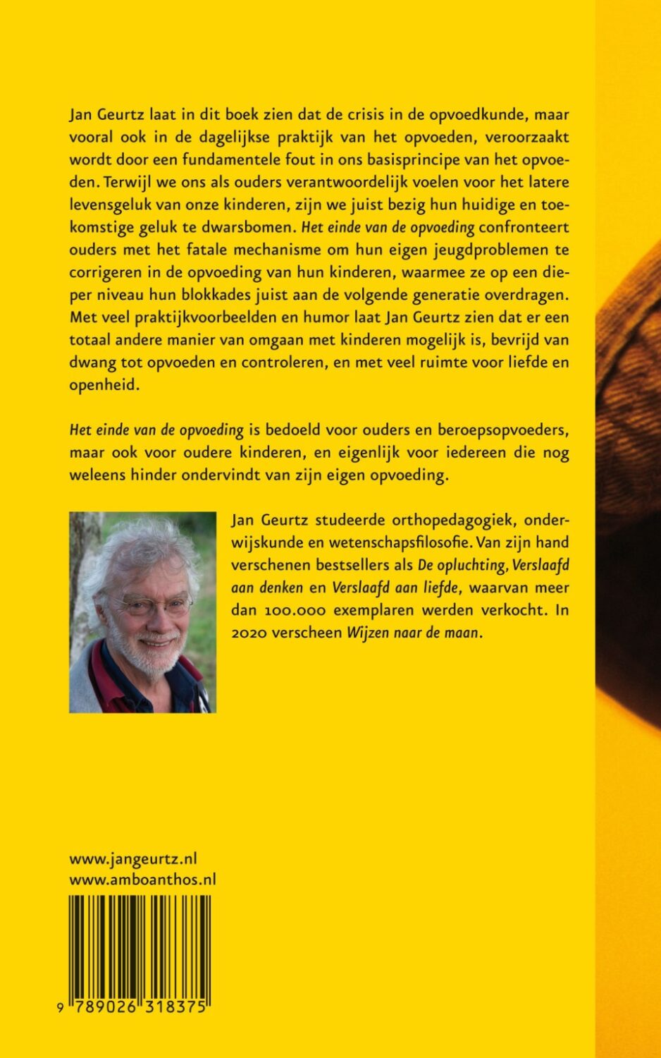 Het einde van de opvoeding confronteert ouders met het fatale mechanisme om hun eigen jeugdproblemen te corrigeren in de opvoeding van hun kinderen, waarmee ze op een dieper niveau hun blokkades en beknellingen juist aan de volgende generatie overdragen. Met veel praktijkvoorbeelden en humor laat Jan Geurtz zien dat er een totaal andere manier van ‘opvoeden’ van kinderen mogelijk is.