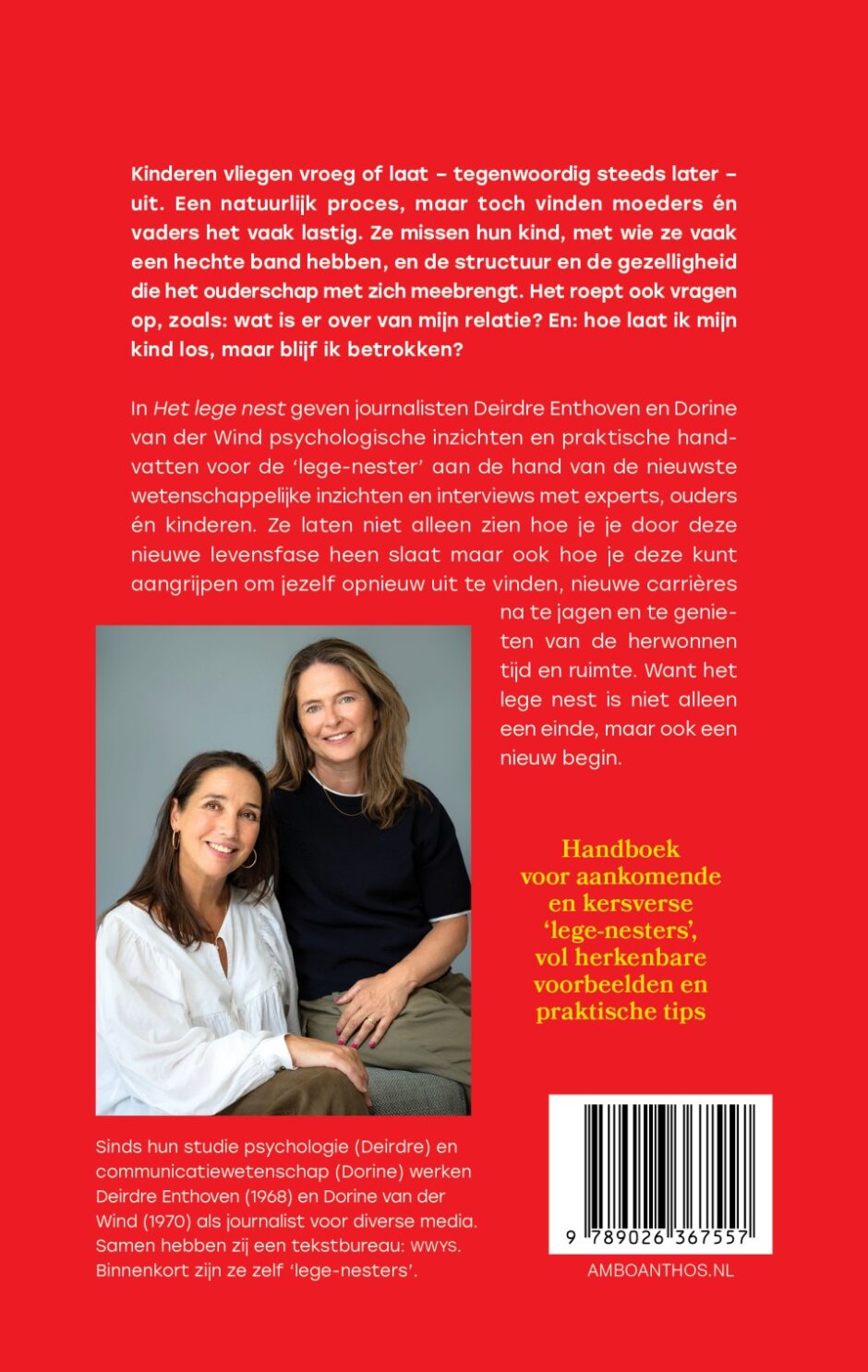 Deirdre Enthoven (1968) en Dorine van der Wind (1970) leren elkaar kennen tijdens hun studententijd. Dorine studeert communicatiewetenschap en Deirdre psychologie. Beiden rollen daarna de journalistiek in en schrijven sindsdien voor verschillende media. Daarnaast hebben ze een tekstbureau: WWYS. Binnenkort zijn ze zelf 'lege-nesters'.