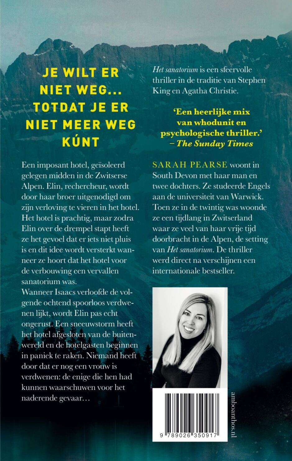 ‘Het sanatorium bevat een knipoog naar het klassieke locked-room mystery, maar is tegelijkertijd vernieuwend. Pearse schrijft snijdend als de Zwitserse sneeuw, en de personages blijven fascineren.’ – A.J. Finn
