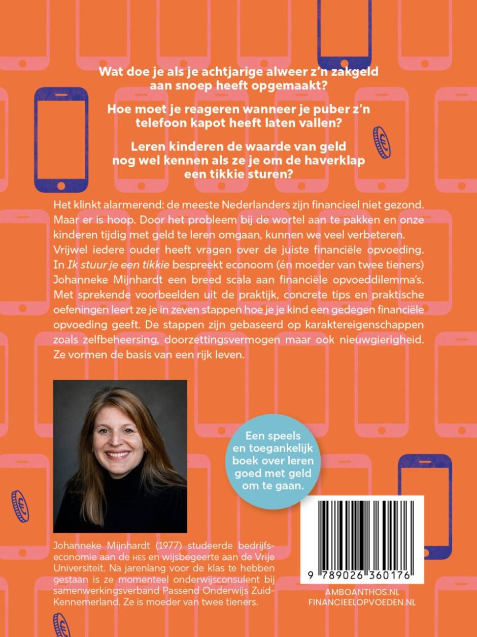 Ik stuur je een tikkie van Johanneke Mijnhardt is een speels en toegankelijk boek over hoe je kinderen leert goed met geld om te gaan. Voor alle ouders met kinderen van ongeveer 6 tot 18 jaar.