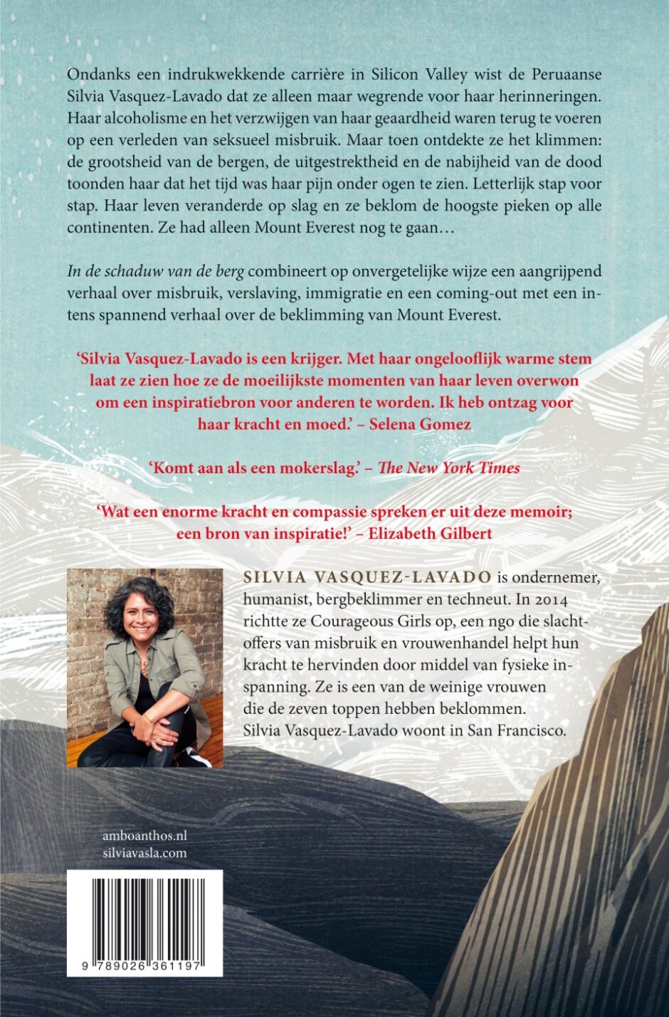 In de schaduw van de berg van Silvia Vasquez-Lavado combineert op onvergetelijke wijze een intens spannend verhaal over de beklimming van de Mount Everest met een aangrijpend verhaal over misbruik, verslaving, immigratie en een coming-out.