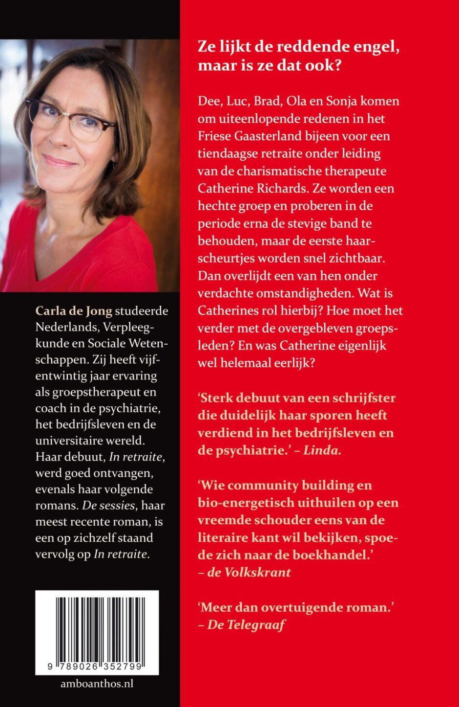 In In retraite van Carla de Jong komen Dee, Luc, Brad, Ola en Sonja in het Friese Gaasterland bijeen voor een tiendaagse therapie onder begeleiding van de charismatische Cathy Richards. Cathy lukt het zelfs om door het pantser van de meest sceptische deelnemer heen te breken en ze weet een bijzondere band tussen de groepsleden te smeden. Eenmaal terug in het gewone leven proberen ze die in stand te houden, maar al snel ontstaan de eerste barsten. Dan overlijdt een van de deelnemers onder verdachte omstandigheden. Wat is Cathy’s rol hierbij? En hoe moet het verder met de andere groepsleden?