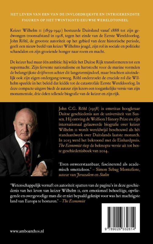 In zijn biografie van Keizer Wilhelm II geeft John Röhl een nieuw beeld van een van de meest intrigerende figuren in de Europese geschiedenis. De keizer had maar één doel: hij wilde het Duitse Rijk transformeren tot een supermacht. Zijn fervente nationalisme en hartstocht voor de marine vormden de belangrijkste drijfveren achter dit langetermijndoel, maar brachten uiteindelijk ook zijn eigen ondergang teweeg. Röhl onderzoekt de cruciale rol die Wilhelm speelde in het beleid dat leidde tot de catastrofale Eerste Wereldoorlog. In deze compacte uitgave biedt de auteur zijn lezers een toegankelijke versie van zijn monumentale, drie delen tellende biografie van de Kaiser en zijn rijk.