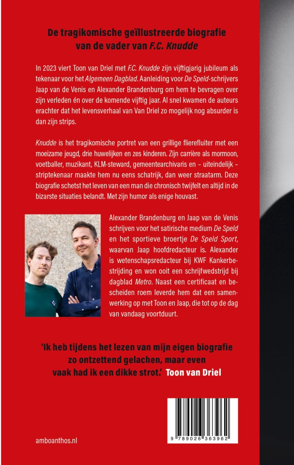 In 2023 viert Toon van Driel met F.C. Knudde zijn vijftigjarig jubileum als tekenaar voor het Algemeen Dagblad. Aanleiding voor De Speld-schrijvers Jaap van de Venis en Alexander Brandenburg om hem te bevragen over zijn ver leden én over de komende vijftig jaar. Al snel kwamen de auteurs erachter dat het levensverhaal van Van Driel zo mogelijk nog absurder is dan zijn strips.