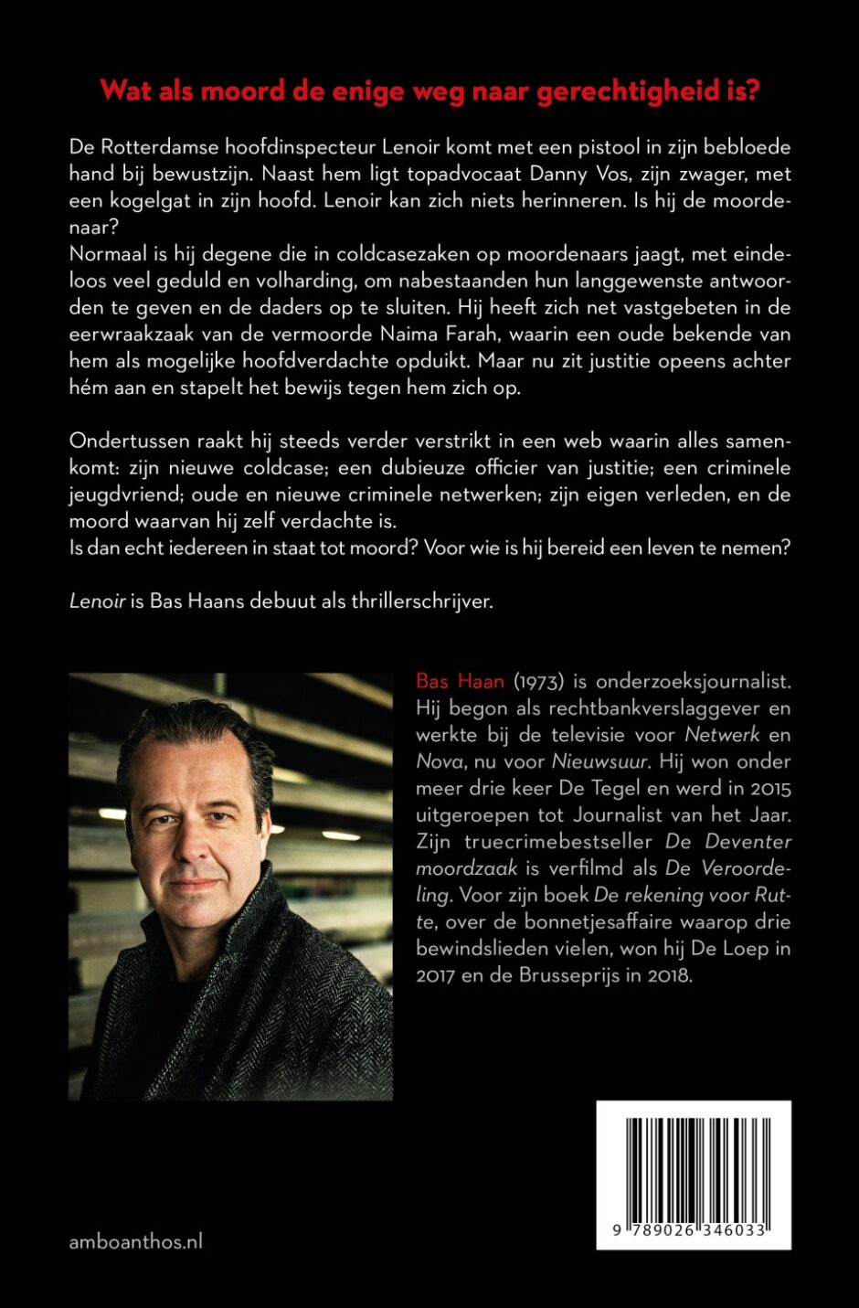 Jacob Lenoir, een Rotterdamse rechercheur, komt met een pistool in zijn bebloede hand bij bewustzijn. Hij is in het huis van zijn zwager, topadvocaat Danny Vos, die naast hem ligt met een kogelgat in zijn voorhoofd. Lenoir kan zich niets herinneren. Is hij nu zelf een moordenaar? Normaliter jaagt coldcaserechercheur Lenoir met eindeloos veel geduld en volharding op moordenaars om nabestaanden hun langgewenste antwoorden te geven en de daders op te sluiten. Hij heeft zich net vastgebeten in de eerwraakzaak van de vermoorde Naima Farah, waarin een oude bekende van hem als mogelijke hoofdverdachte opduikt. En nu wordt Lenoir opeens zelf verdacht van moord.