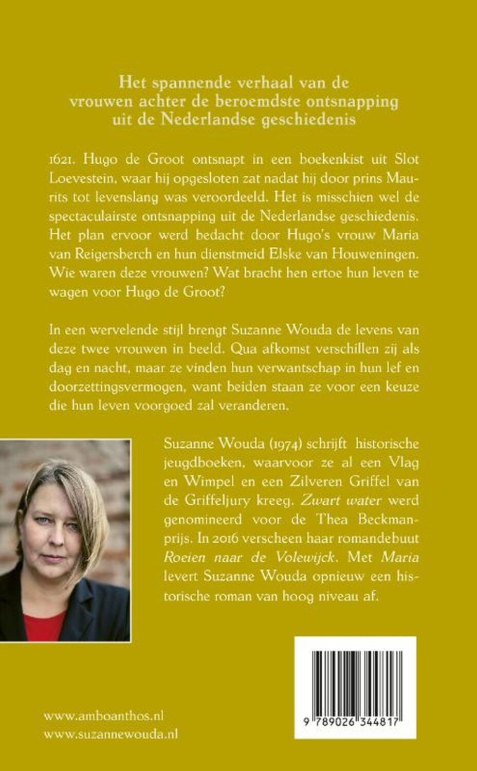 Maria van Suzanne Wouda gaat over de spectaculairste ontsnapping uit de Nederlandse geschiedenis, de ontsnapping van Hugo de Groot, vanuit het perspectief van twee vrouwen. Maria is een intrigerende combinatie van geschiedenis en fictie.