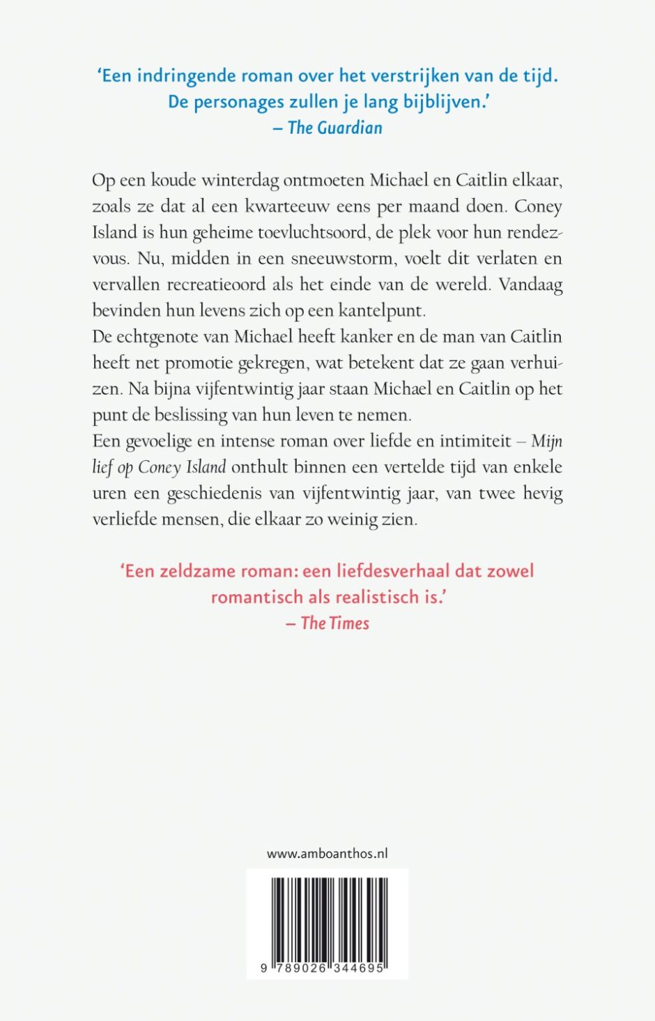 Een gevoelige en intense roman over liefde en intimiteit – Mijn lief op Coney Island onthult binnen een vertelde tijd van enkele uren een geschiedenis van twee hevig verliefde mensen, die elkaar zo weinig zien.