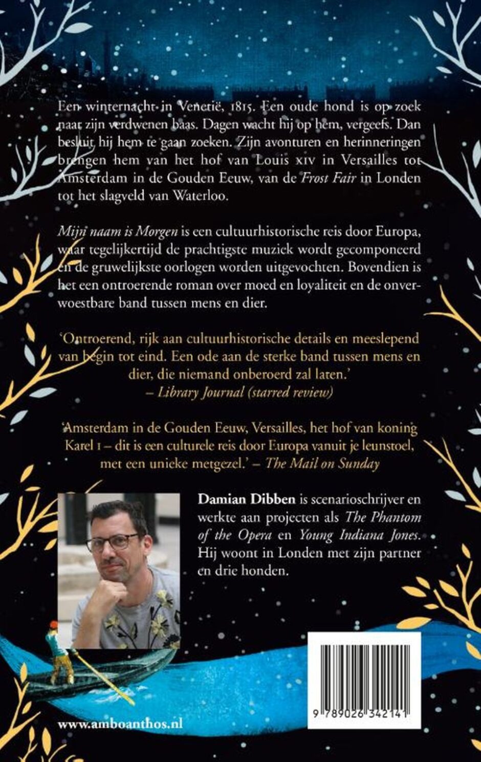Mijn naam is Morgen van Damian Dibben is een onweerstaanbare historische roman over een hond op zoek naar zijn baas. Een cultuurhistorische reis door Europa, waar tegelijkertijd de prachtigste muziek wordt gecomponeerd en de gruwelijkste oorlogen worden uitgevochten. Een weergaloos verhaal over de onverwoestbare band tussen mens en dier.