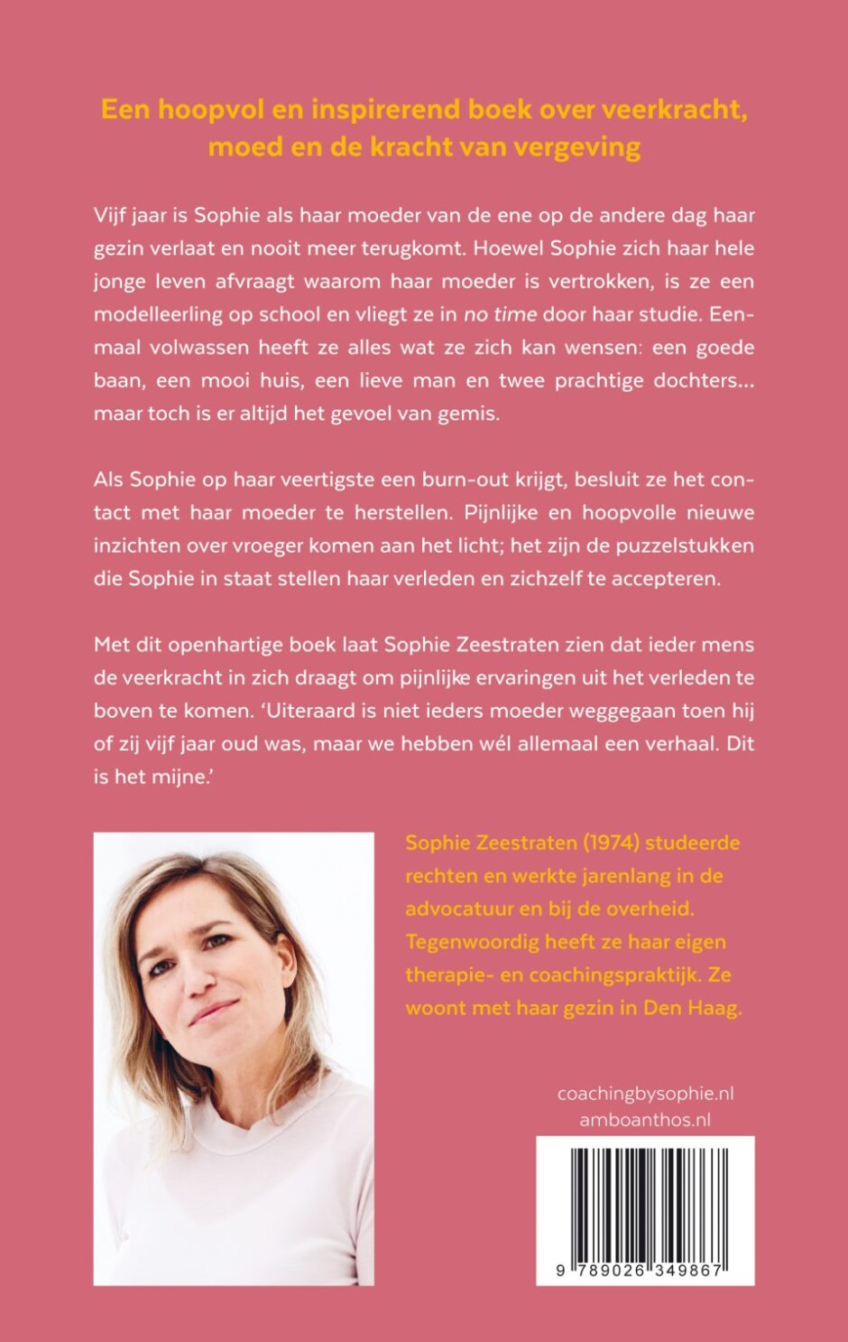 Met dit openhartige boek laat Sophie Zeestraten zien dat ieder mens de veerkracht in zich draagt om pijnlijke ervaringen uit het verleden te boven te komen. ‘Uiteraard is niet ieders moeder weggegaan toen hij of zij vijf jaar oud was, maar we hebben wél allemaal een verhaal. Dit is het mijne.’