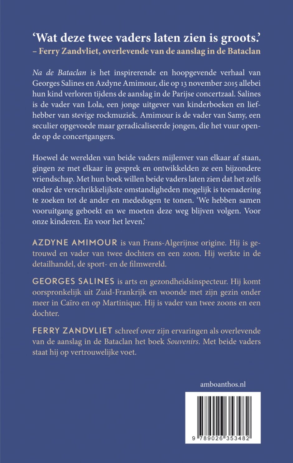 Na de Bataclan is het inspirerende en hoopgevende verhaal van Georges Salines en Azdyne Amimour, die op 13 november 2015 allebei hun kind verloren tijdens de aanslag in de Parijse concertzaal. Salines is de vader van Lola, een jonge uitgever van kinderboeken en liefhebber van stevige rockmuziek. Amimour is de vader van Samy, een seculier opgevoede maar geradicaliseerde jongen, die het vuur opende op de concertgangers.