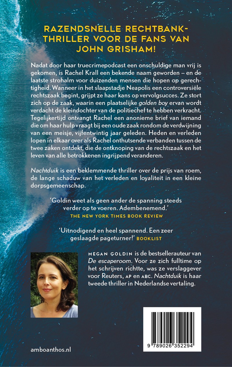 Nachtduik van Megan Goldin is een razendsnelle psychologische thriller over een controversiële rechtszaak.