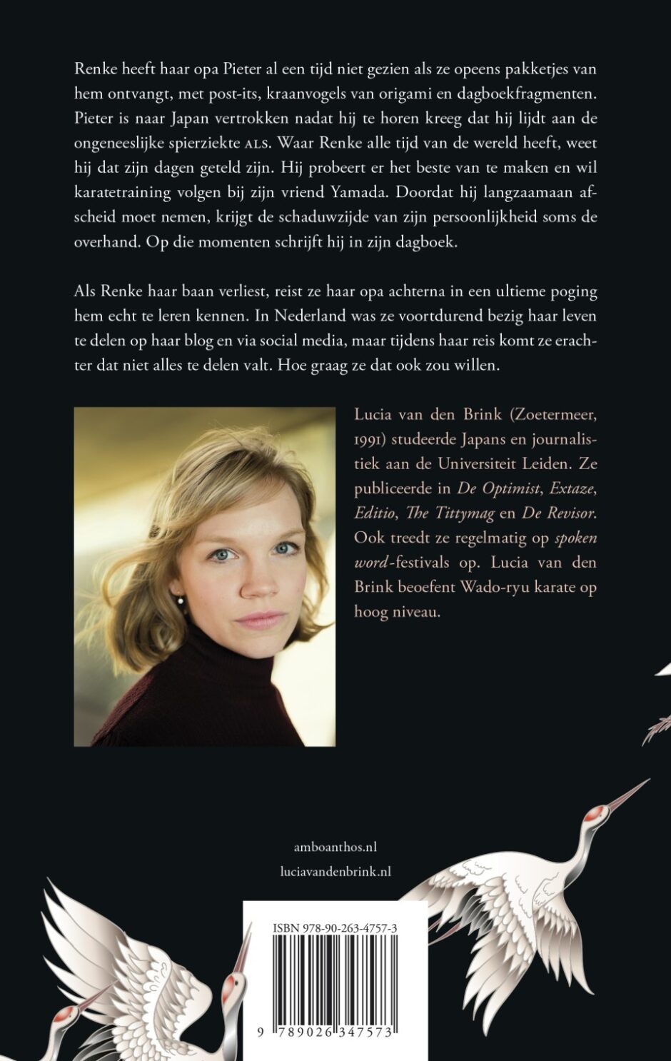 Renke heeft haar opa Pieter al een tijd niet gezien als ze opeens pakketjes van hem ontvangt, met post-its, kraanvogels van origami en dagboekfragmenten. Pieter is naar Japan vertrokken nadat hij te horen kreeg dat hij lijdt aan de ongeneeslijke spierziekte als. Waar Renke alle tijd van de wereld heeft, weet hij dat zijn dagen geteld zijn. Hij probeert er het beste van te maken en wil karatetraining volgen bij zijn vriend Yamada. Doordat hij langzaamaan afscheid moet nemen, krijgt de schaduwzijde van zijn persoonlijkheid soms de overhand. Op die momenten schrijft hij in zijn dagboek.