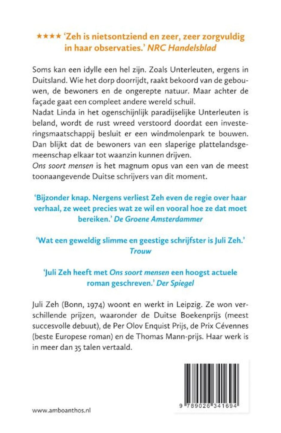 Juli Zeh ontleedt de personages meesterlijk en met subtiele humor en laat hun ware gezichten zien. Ons soort mensen is een internationale bestseller.