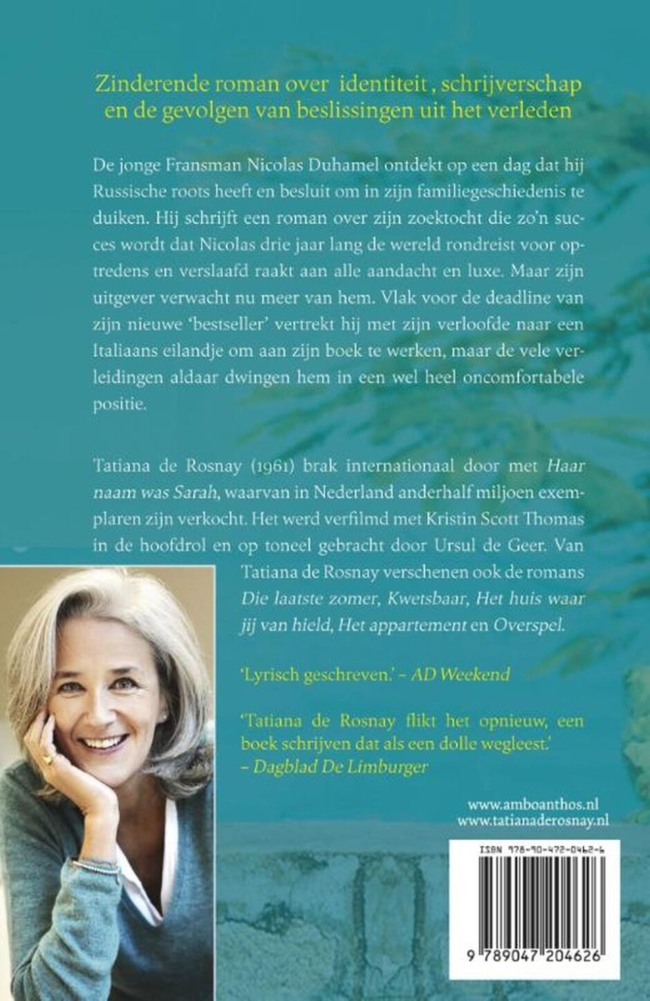 Het boek Onvoltooid verhaal van Tatiana de Rosnay vertelt over de jonge Fransman Nicolas Duhamel die op een dag ontdekt dat hij Russische roots heeft. Hij besluit om zijn zoektocht te beschrijven in een roman. Het boek wordt zo n succes dat Nicolas drie jaar lang de wereld rondreist voor optredens en verslaafd raakt aan de aandacht en luxe. Vlak voor hij zijn nieuwe `meesterwerk moet inleveren vertrekt hij met zijn verloofde naar een Italiaans eilandje om aan zijn boek te werken, maar de vele verleidingen aldaar dwingen hem in een wel heel oncomfortabele positie.