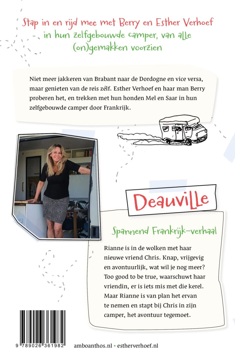 Niet meer jakkeren van Brabant naar de Dordogne en vice versa, maar genieten van de reis zélf. Esther Verhoef en haar man Berry proberen het, en trekken met hun honden Mel en Saar in hun zelfgebouwde camper door Frankrijk.