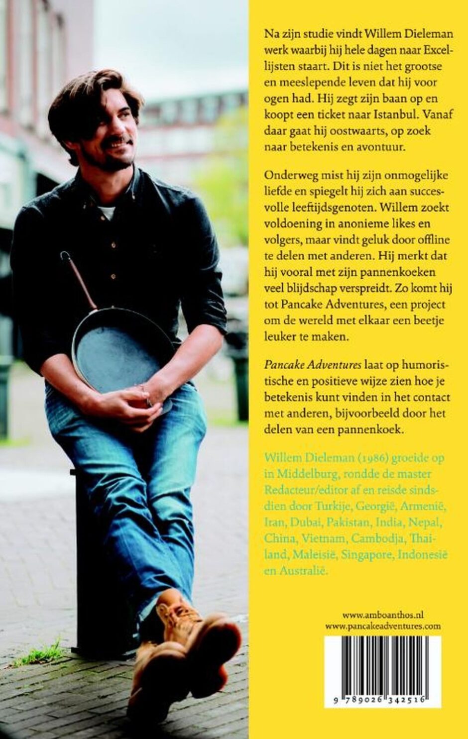 In Pancake Adventures vertelt Willem Dieleman over hoe hij na zijn studie worstelt met het verlangen naar een groots en meeslepend leven. Hij ruilt Amsterdam in voor Istanbul om vandaaruit over land oostwaarts te reizen door Georgië, Armenië, Iran, Dubai, Pakistan en India. Zijn reis zit vol avontuur en bijzondere ontmoetingen, en toch verlangt hij naar zijn onmogelijke liefde en spiegelt hij zich steeds aan succesvolle generatiegenoten. Dieleman zoekt naar meer betekenis in zijn leven en zijn reizen, en merkt dat hij met zijn grootmoeders recept voor pannenkoeken veel blijdschap verspreidt. In tijden waarin we het vertrouwen in de medemens soms lijken te verliezen laat Pancake Adventures op humoristische en positieve wijze zien hoe je jezelf kunt vinden juist door contact te maken met anderen, bijvoorbeeld via een pannenkoek.