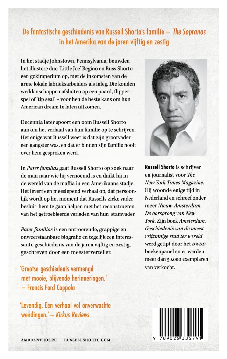 In Pater familias gaat Russell Shorto op zoek naar de man naar wie hij vernoemd is. Hij duikt in de wereld van de maffia in het kleine stadje Johnstown. Het levert een meeslepend verhaal op, dat persoonlijk wordt op het moment dat Russells zieke vader besluit zijn partner te worden bij het reconstrueren van het getroebleerde verleden van hun beider stamvader.