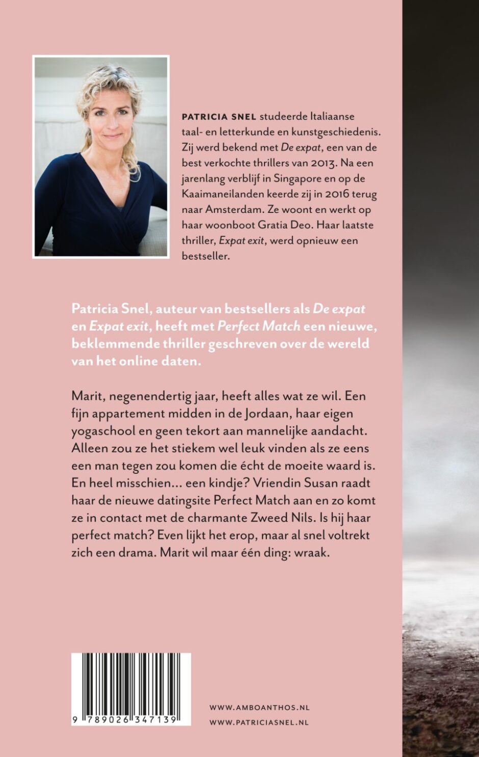 Patricia Snel, auteur van bestsellers als De expat en Expat exit, heeft met Perfect Match een nieuwe, beklemmende thriller geschreven over de wereld van het online daten.