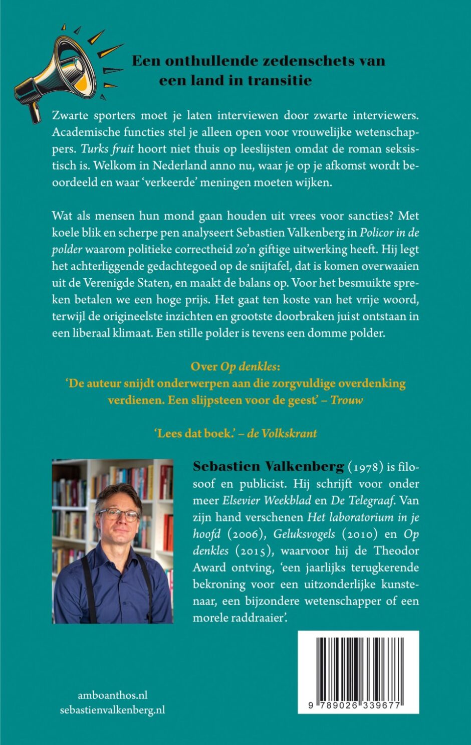 Policor in de polder van Sebastien Valkenberg verhaalt over hoe politieke correctheid Nederland dom maakt. Zwarte sporters moet je laten interviewen door zwarte interviewers. Academische functies stel je alleen open voor vrouwelijke wetenschappers. Turks fruit hoort niet thuis op leeslijsten omdat de roman seksistisch is. Welkom in Nederland anno nu, waar je op je afkomst wordt beoordeeld en waar ‘verkeerde’ meningen moeten wijken.