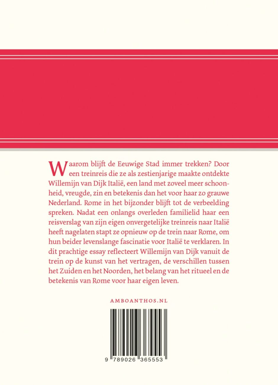 Waarom blijft de Eeuwige Stad immer trekken? Door een treinreis die ze als zestienjarige maakte ontdekte Willemijn van Dijk Italië, een land met zoveel meer schoonheid, vreugde, zin en betekenis dan het voor haar zo grauwe Nederland. Rome in het bijzonder blijft tot de verbeelding spreken. Nadat een onlangs overleden familielid haar een reisverslag van zijn eigen onvergetelijke treinreis naar Italië heeft nagelaten stapt ze opnieuw op de trein naar Rome, om hun beider levenslange fascinatie voor Italië te verklaren.