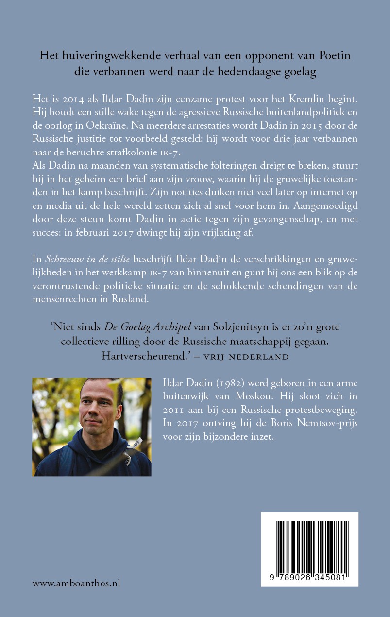 In Schreeuw in de stilte beschrijft Ildar Dadin de verschrikkingen en de gruwelijkheden in het werkkamp IK-7 van binnenuit, en gunt hij ons een blik op de verontrustende politieke situatie in Rusland en de schokkende schendingen van de mensenrechten.